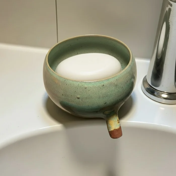 The inner chamber where the soap is placed is completely glazed. This water-resistant surface allows for easy cleaning and hygienic use. The natural and matte texture on the exterior and the glazed surface on the inside combine to offer a simple yet characterful look.