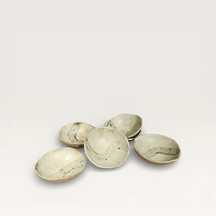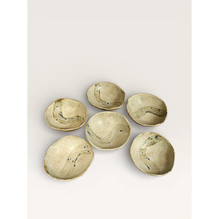 This set of 6 bowls is completely hand-shaped with stoneware clay. The insides of the bowls are coated with food-grade glaze. The flow marks and natural color transitions formed on the open ground ensure that each bowl carries its own unique pattern.