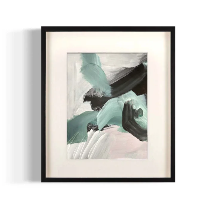 Material:Black Wooden Frame, Glass, Off-White Mount