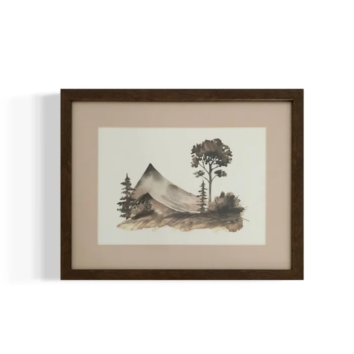 The Mountain series is digital printing on paper. It consists of passepartout, glass and frame. The patterns are drawn by Nakalend. A gallery wall can be created by combining it with other models of the same series or different frame models. 3mm thick glass is used in our frames. Since our bitter coffee frames, cream passepartouts, glass frames are specially produced for you on order, there is a production time of 5 to 10 working days. SIZE: 33X42 CM