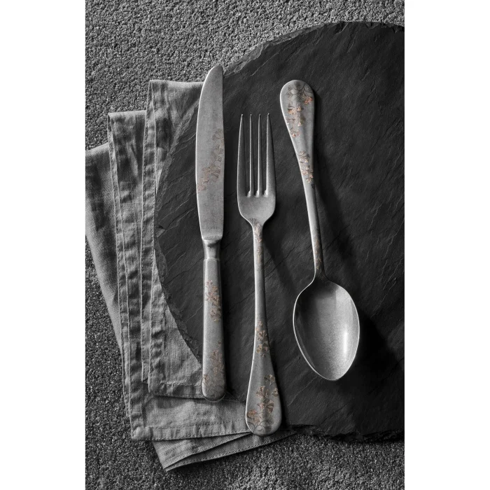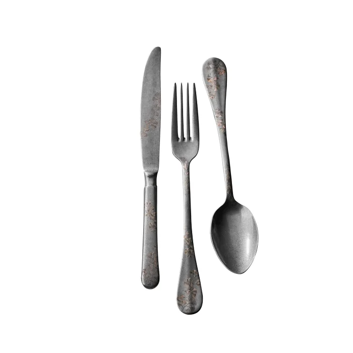 Baguette Series - Retro - Leaf Pattern - 18 Piece Cutlery Set; Product features: ; It is made of 18/10 Cr-Ni stainless steel. ; It is resistant to corrosion. ; Dishwasher safe. ; 18 Pieces Cutlery Set includes: ; 6 tablespoons, ; 6 pieces of food cutlery, ; 6 pieces of food knives. ;