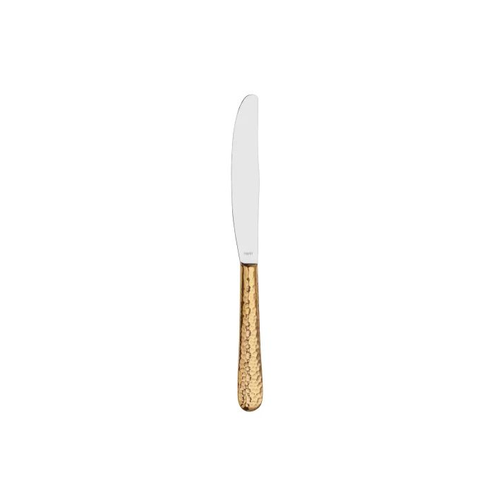 Forged Dessert Knife - Matte Gold - 12 Pieces; There are 12 Forged model Sweet Knives in the box; ; Product features: ; It is made of 18/10 Cr-Ni stainless steel; ; It is corrosion resistant.; ; It is covered with real gold dust. ; It can be washed in the dishwasher, but it should be used more carefully than daily used products. Extra chemicals should not be used in dishwashers, except for standard detergents; ; Product Size: 205 mm / 12 mm;