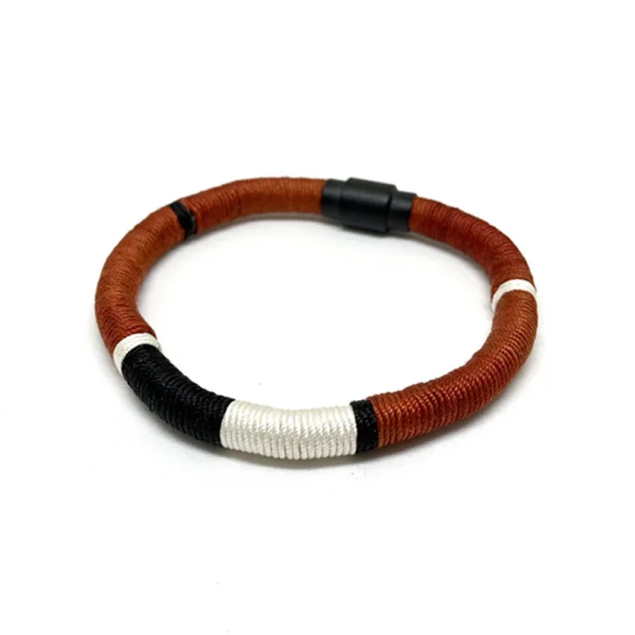 Material: Cotton rope, Silk thread dyed with herbs, Coated brass accessory-magnet. Due to the nature of natural dye, there are likely to be slight tonal differences between the image and the color of your product.