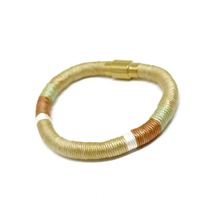 Material: Cotton rope, Silk thread dyed with herbs, Coated brass accessory-magnet.