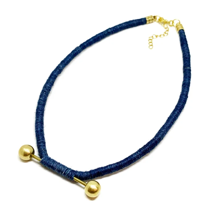 It is produced with silk threads dyed with natural dyes, cotton ropes and gold-plated brass accessories.