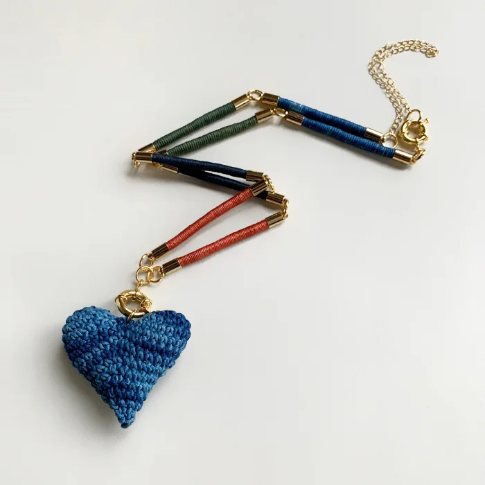Knitted heart alderm, heartbeat... No, no! chains representing exciting heartbeats; It is dyed with havamercury root, redroot, indigo and cochineal.