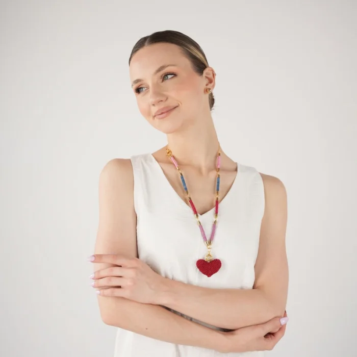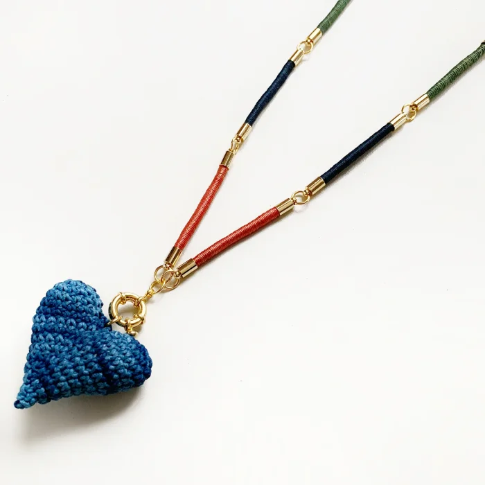 It is produced with gold-plated brass accessories, cotton rope and silk threads dyed with natural dyes.