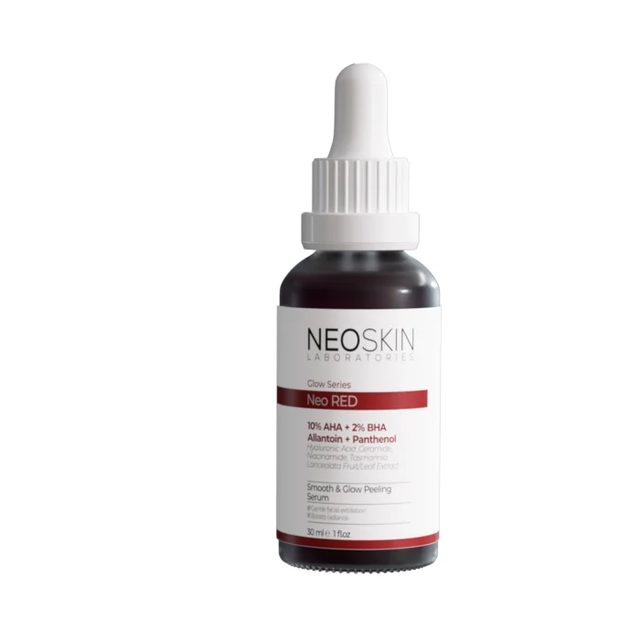 Neoskin Neo Red serum, which contains 10% Alpha Hydroxy Acid and 2% Beta Hydroxy Acid, provides peeling of the skin with micro exfoliation and helps to purify it from dead cells, blackheads and excess sebum. With its formula containing Tasmannia lanceolata extract and panthenol, it is ideal for those who prefer a gentle exfoliating product with a low pH acidity. Neo Red serum penetrates all layers of the skin with 8 different molecular size hyaluronic acid complex, allowing it to revitalize and moisturize without irritating the skin. While hyaluronic acids with a high molecular structure attract moisture and trap it on the skin surface, those with a small molecular structure reach the lower layers of the skin and provide effective moisturizing. Allantoin and panthenol work to help reduce sensitivity, soothe irritated skin. With its powerful formula containing Ceramid, which provides support for the repair of the skin barrier, it helps to smooth the weakened skin and make it look more vibrant and radiant. Refresh your skin with the gentle exfoliating serum Neo Red! It is a cruelty free product that is not tested on animals. Ingredients: Aqua, Propylene Glycol, Glycolic Acid, Salicylic Acid, Anthocyanin, Sodium Pca, Panthenol, Allantoin, Citric Acid, Lactic Acid, Malic Acid, Gluconic Acid, Ascorbic Acid, Tartaric Acid, Erythritol, Caprylyl Glycol, Niacinamide, Hydroxypropyltrimonium Hyaluronate, Hydrolyzed Hyaluronic Acid, Sodium Acetylated Hyaluronate, Hyaluronic Acid, Sodium Hyaluronate Crosspolymer, Hydrolyzed Sodium Hyaluronate, Potassium Hyaluronate, Sodium Hyaluronate, Glucose, Chondrus Crispus Extract, Glycerin, Tasmannia Lanceolata Fruit/Leaf Extract, Phenethyl Alcohol, Xanthan Gum, Pseudozyma/Epicola/Soybean Flour/Olive Fruit Oil Ferment Filtrate, Mannosylerythritol Lipid, Ceramide NP, PEG 60-Hydrogenated Castor Oil, PEG 40-Hydrogenated Castor Oil, Cetearyl Alcohol,Ceteareth-20, Polysorbate 20, Propanediol, 1,2-Hexanediol, Potassium Sorbate, Tetrasodium EDTA.