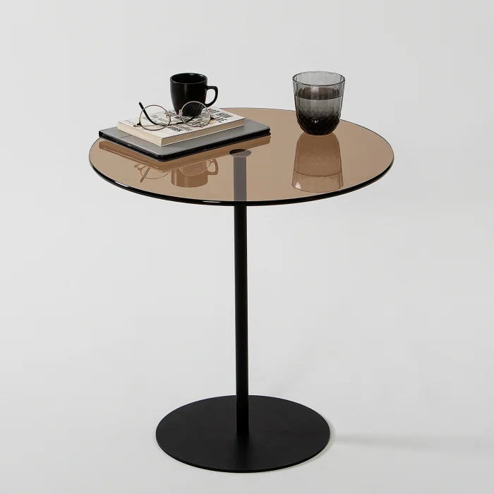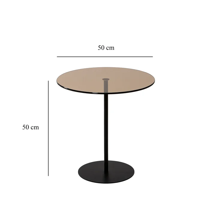 - Width: 50 cm. Height: 50 cm. Depth: 50 cm. • Table leg material is metal. It is gold in color. Painted with electrostatic powder/ oven paint. Does not rust, does not peel. • Tempered smoked glass is used. • Tempered glass; It is a safe glass that is resistant to impacts and breakage, has high strength, and does not create any danger when broken. The resistance of normal glass is increased by subjecting it to heat treatment with advanced technology. When tempered glass is broken, it breaks into small blunt pieces. Therefore, it does not pose a danger to human health and safety, it is safe. • Materials suitable for environment and health are used. • First quality connection and accessory materials are used. • It is domestic production with 100% domestic material.