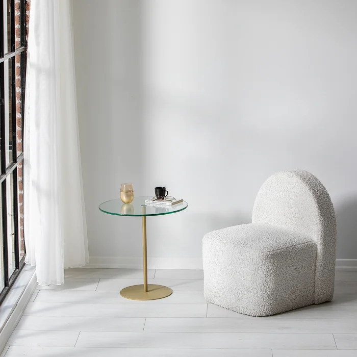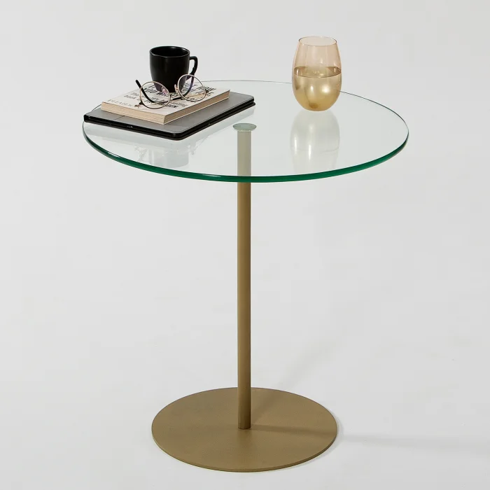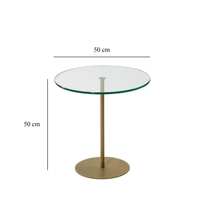 • Width: 50 cm. Height: 50 cm. Depth: 50 cm. • Table leg material is metal. It is gold in color. Painted with electrostatic powder/ oven paint. Does not rust, does not peel. • Tempered smoked glass is used. • Tempered glass; It is a safe glass that is resistant to impacts and breakage, has high strength, and does not create any danger when broken. The resistance of normal glass is increased by subjecting it to heat treatment with advanced technology. When tempered glass is broken, it breaks into small blunt pieces. Therefore, it does not pose a danger to human health and safety, it is safe. • Materials suitable for environment and health are used. • First quality connection and accessory materials are used. • It is domestic production with 100% domestic material.