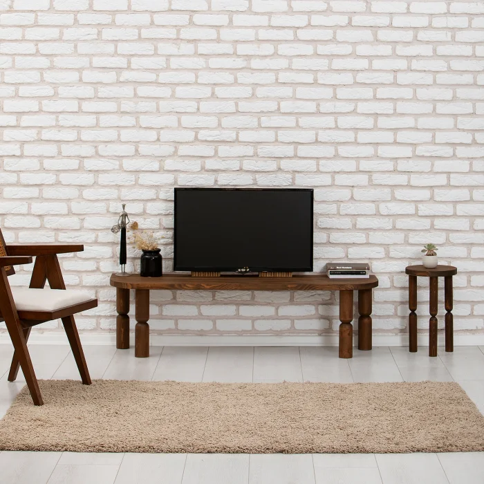 PRODUCT SIZES Width: 140 cm. Height: 40 cm. Depth: 35 cm. You can examine the detailed size of the product from our images. PRODUCT FEATURES • 100% natural solid wood is used. UV resistant colorant and water based ultra matte varnish are used throughout the product. • Since it is produced from 100% natural wood, direct sunlight and water contact should be avoided so that it does not change shape over time depending on the humidity of the environment and the way of use. • The product is suitable for indoor use. • It is harmless to the environment and children's health. Since it is a natural tree and each one is unique, there may be different vein images and color differences from what is seen in the photo. • The TV Stand is shipped disassembled. It is easily made ready for use. • It is domestic production with 100% domestic material.