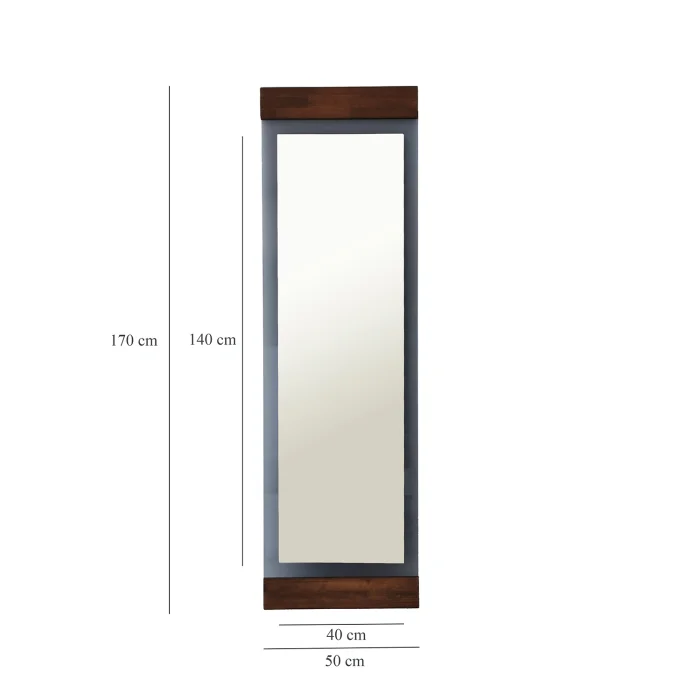 Product sizes Glass Size: Width: 50 cm. Height: 170 cm. Depth: 3cm Mirror Size: Width: 40 cm. Height: 140 cm. Depth: 3cm • You can examine the detailed size of the product from our visuals. Product features • Mirror color is standard. • The mirror is attached to a smoked tempered glass. tempered glass; It is a safe glass that is resistant to impacts and breakage, has high strength, and does not create any danger when broken. The resistance of normal glass is increased by subjecting it to heat treatment with advanced technology. When tempered glass is broken, it breaks into small blunt pieces. Therefore, it does not pose a danger to human health and safety, it is safe. Material: Ecological Flotal-E mirror. It is produced without copper and lead, does not contain harmful substances to the nature, Flotal E is environmentally friendly. It is resistant to high atmospheric humidity. It has a brighter image than other mirrors. It offers a clearer, clearer and more natural image with its high light reflectivity. 100% natural solid wood is used. Colored with water-based paint that is harmless to the environment and children's health, it is unpolished. Since it is a natural tree and each one is unique, there may be different vein images and color differences from what is seen in the photo. • Installation belongs to the customer. • A slightly damp cloth can be used for cleaning. • It is suitable for home, office, workplace, living room and all places. Parcel Information • The product has been packaged with special materials and care. It can be supported with high strength packaging materials and corners. First class cardboard is placed in a box and covered with nylon in the shrink machine.