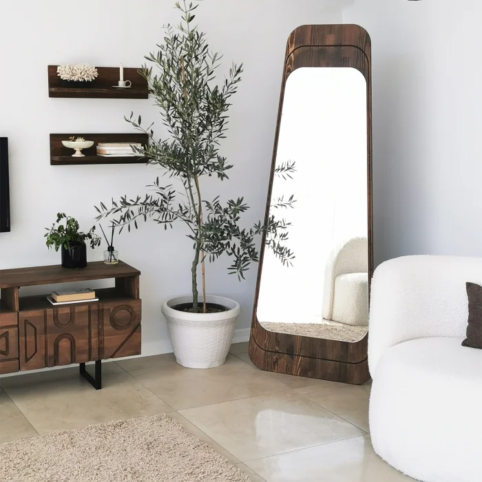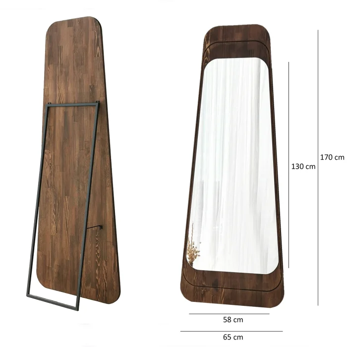 Product sizes Mirror Size: Width: 65 cm. Height: 170 cm. Depth: 2cm Product features • Mirror color is standard. • The mirror can be used both horizontally and vertically. There are 2 types of hangers for hanging on the wall. Material: Ecological Flotal-E mirror. It is produced without copper and lead, does not contain harmful substances to the nature, Flotal E is environmentally friendly. It is resistant to high atmospheric humidity. It has a brighter image than other mirrors. It offers a clearer, clearer and more natural image with its high light reflectivity. 100% natural solid wood is used. Colored with water-based paint that is harmless to the environment and children's health, it is unpolished. Since it is a natural tree and each one is unique, there may be different vein images and color differences from what is seen in the photo. • Installation belongs to the customer. • A slightly damp cloth can be used for cleaning. • It is suitable for home, office, workplace, living room and all places. Parcel Information • The product has been packaged with special materials and care. It can be supported with high strength packaging materials and corners. First class cardboard is placed in a box and covered with nylon in the shrink machine.