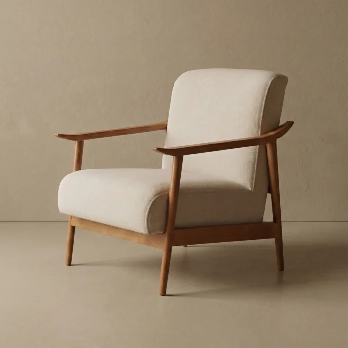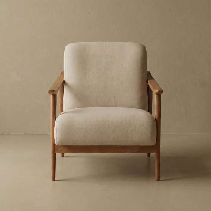 The most natural form of wood met with the most elegant form of design. [Product Name] Armchair; It will be the new favorite of your home with its delicate wooden details, body-hugging ergonomic structure and stance that adds warmth to the space.