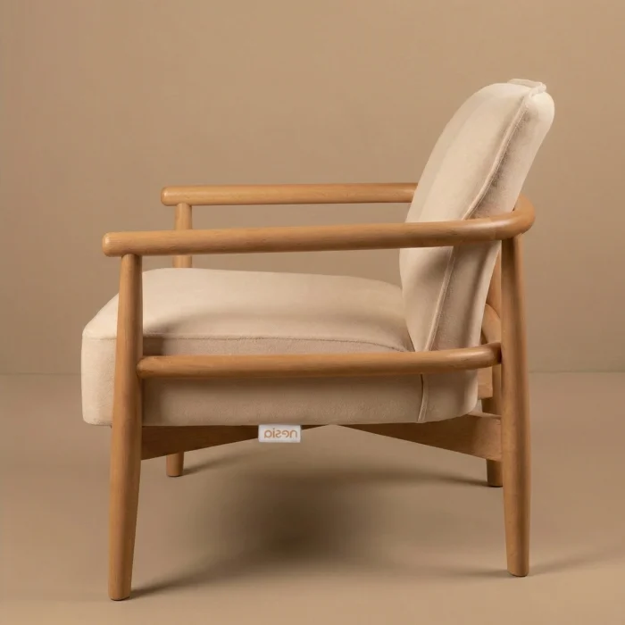 One of the most stylish representatives of the minimalist design approach, [Icon armchair combines functionality and aesthetics. The first-class kiln-dried solid wood used in the frame of the product exhibits both a safe and elegant stance with its turned rounded lines. Its high-density sponge structure provides maximum comfort by maintaining its form even during long periods of sitting. Its stain-resistant and breathable special textured fabric offers practicality in daily use, while it easily adapts to all kinds of decoration styles (Japandi, Modern, Bohemian) with its neutral tones.