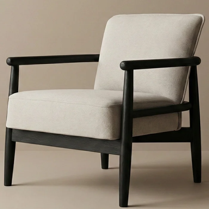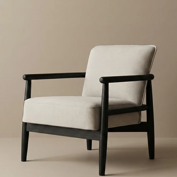 One of the most stylish representatives of the minimalist design approach, [Icon armchair combines functionality and aesthetics. The first-class kiln-dried solid wood used in the frame of the product exhibits both a safe and elegant stance with its turned rounded lines. Its high-density sponge structure provides maximum comfort by maintaining its form even during long periods of sitting. Its stain-resistant and breathable special textured fabric offers practicality in daily use, while it easily adapts to all kinds of decoration styles (Japandi, Modern, Bohemian) with its neutral tones.