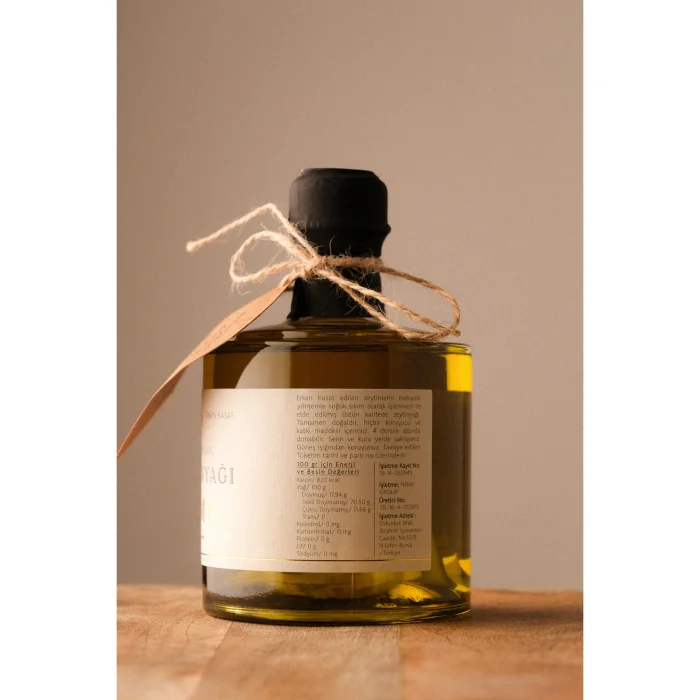 Glass Bottle Packaging: Presented in a 250 ml glass bottle, this olive oil preserves both the freshness and the flavor of the product. The glass bottle keeps the olive oil away from light and air contact.