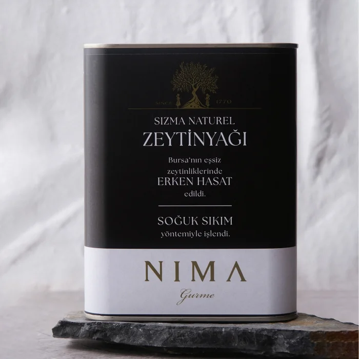 Cold Pressing Method: Nima Gourmet Extra Virgin Natural Bursa Olive Oil is produced by cold pressing method. This method preserves the natural properties of olives and prevents the loss of vitamins and antioxidants. Thus, the purest and freshest olive oil is obtained.