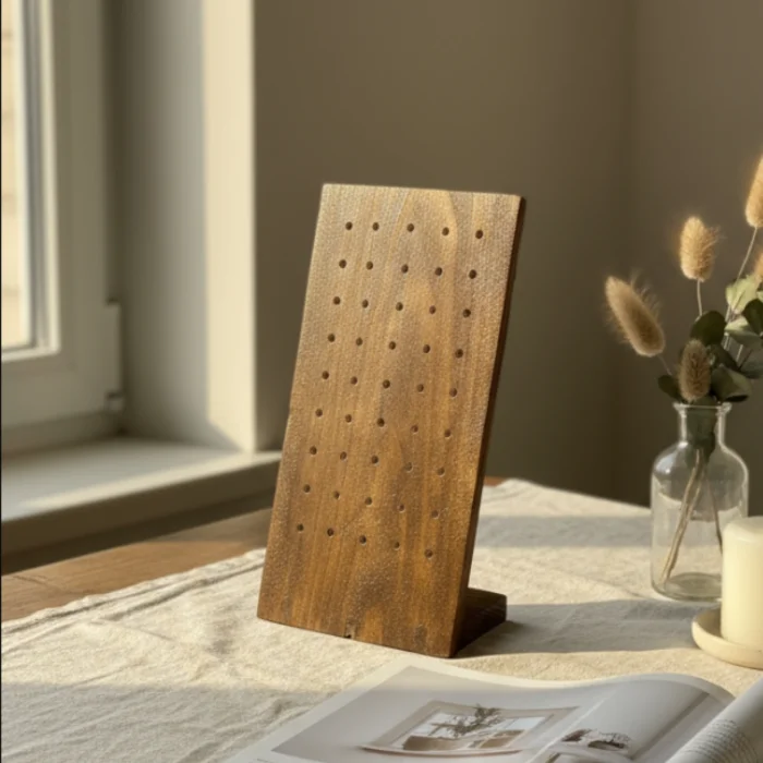 elegance and order with its natural texture, this wooden jewelry stand is designed for you to display and organize your earrings aesthetically.