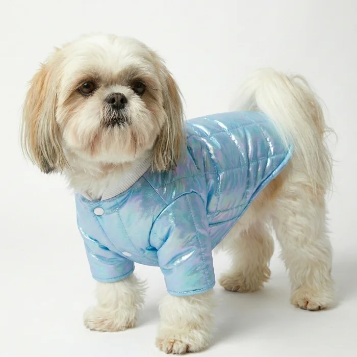The Blue Shiny Dog Coat is produced to keep dogs at a high level in terms of both heat and style during the winter months. It is designed to keep our little friends warm on the coldest winter days with its extra thick fiber filling. You will love its blue shiny texture that will make them the star of the streets in the cold without compromising their style!