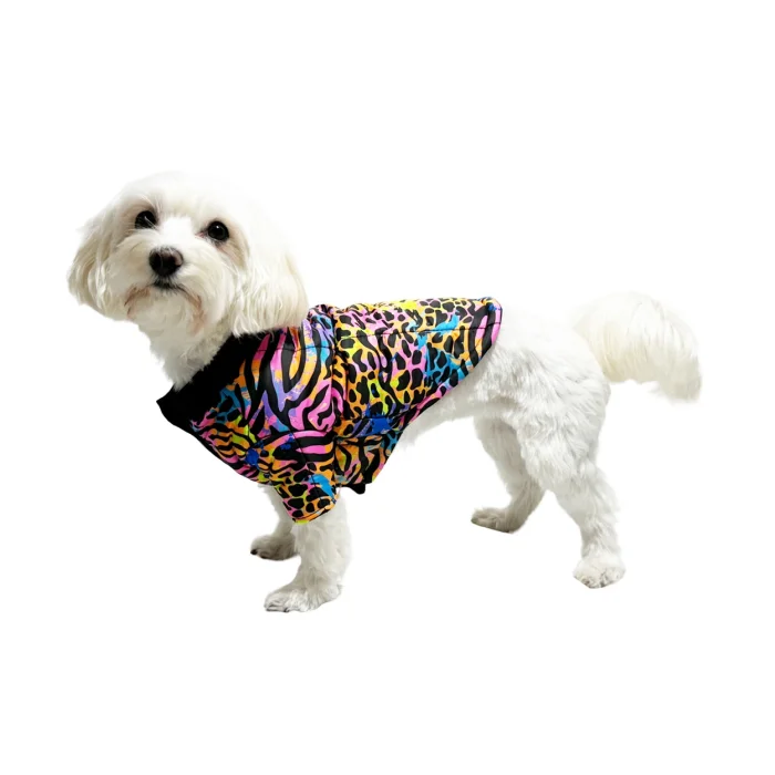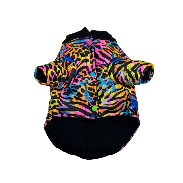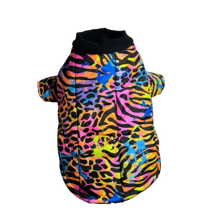Neon Zebra Patterned Lined Dog Coat is designed to keep dogs at the highest level of both warmth and style in winter.