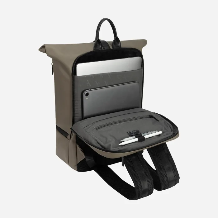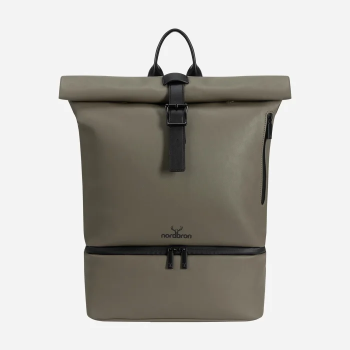 The main sections at the back and front: Front main compartment with magnet and lid Zippered bottom compartment Zippered side compartment 4 interior compartments without zippers Zippered rear main compartment; Padded laptop compartment in the inner rear (16") Zippered/non-zippered interior compartments Zippered compartments on the rear exterior Adjustable shoulder strap Nordbron Logo 100% Artificial Leather Water repellent fabric feature Width: 38 cm Height: 44 cm Inner depth: 16 cm Volume: 26L Weight: 1300 gr.