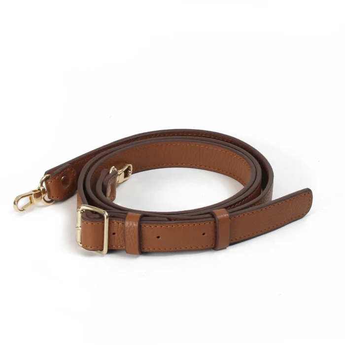 It is 100% calfskin, handcrafted. Cotton fabric lining There is a zippered mini pocket on the front. There is 1 open pocket in the interior. There is a detachable and adjustable leather strap. Gold-colored metal accessories are used.