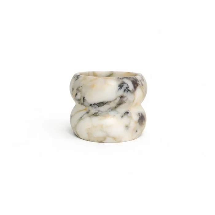 Designed with its soft curved form and the elegant veins of natural stone, this object offers a simple yet characterful stance. Each piece is unique, with the stone's distinctive patterns; As a pen holder, brush holder or decorative accent, it adds a serene elegance to the space. WIDTH:13,5 HEIGHT:13,5 HEIGHT:12