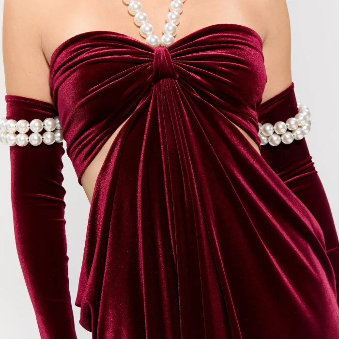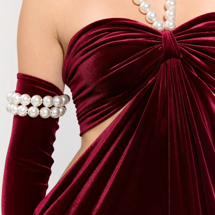 The pearl gloves included in the dress complete the elegance and create an eye-catching integrity.