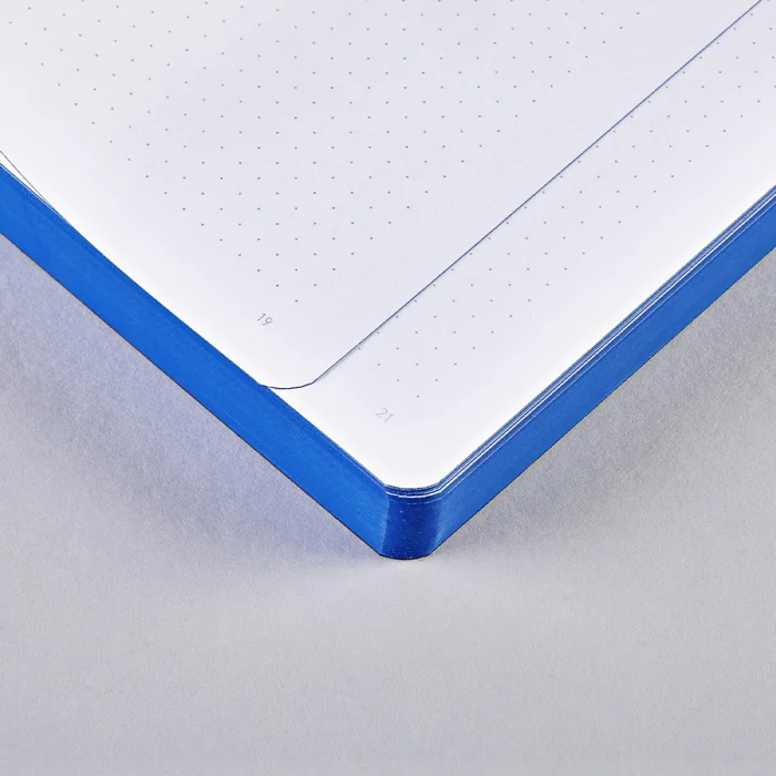 • Edge printing that complements the notebook motif and protects your notebook from dust and dirt • Thread stitching to keep the notebook straight • Smooth recycled leather • Environmentally friendly • Soft and flexible cover • High quality silk screen printing • 120 Gr high quality munken paper • 256 numbered pages • Page Style : 3.5 mm gray dots • Notebook weight : 640 gr • Format L: 165x220 mm • Place of Production : Germany
