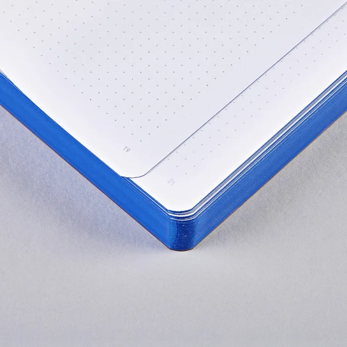 • Edge printing that complements the notebook motif and protects your notebook from dust and dirt • Thread stitching to keep the notebook straight • Smooth recycled leather • Environmentally friendly • Soft and flexible cover • High quality silk screen printing • 120 Gr high quality munken paper • 256 numbered pages • Page Style : 3.5 mm gray dots • Notebook weight : 640 gr • Format L: 165x220 mm • Place of Production : Germany