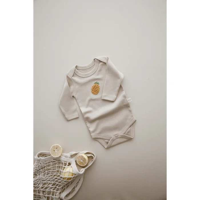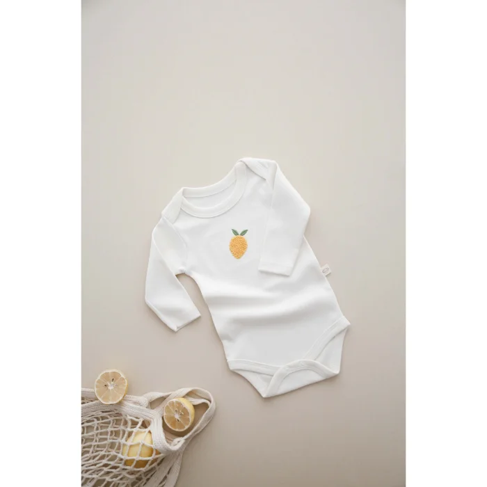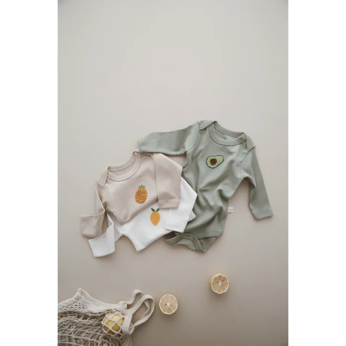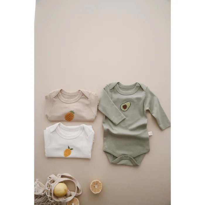 Product: Long-sleeve Bodysuit With Fruit Pattern And Snap Buttons 3-piece