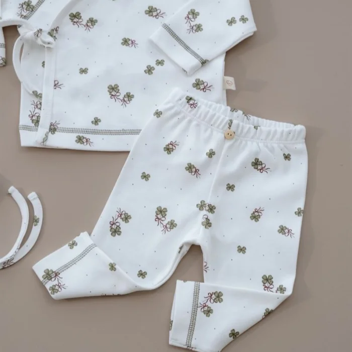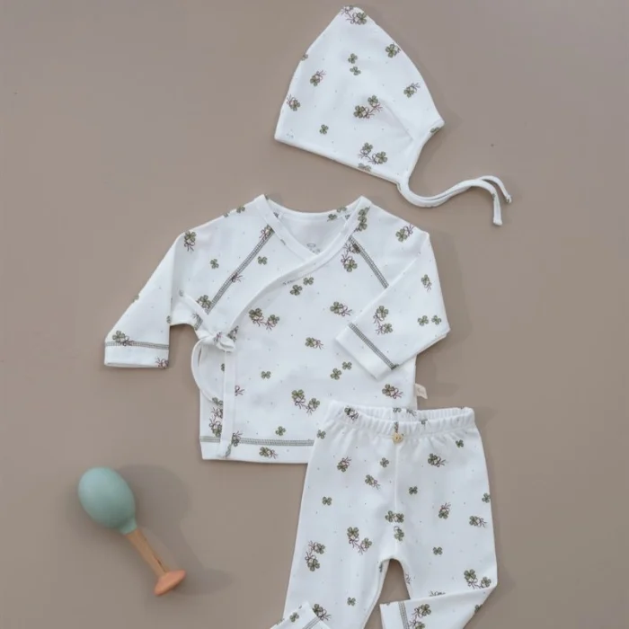 Pure Hug Series – Double-Breasted Tie-Down Stitched Detailed Set Tights • Double-Breasted Top • Hat The Pure Hug Series, where minimal lines and soft textures meet, is designed for your baby's comfort all day long.; While it is easy to wear thanks to its double-breasted tie top form, elegant stitching details give the suit a simple elegance; Her stretchy leggings offer freedom of movement, while her matching hat completes the look; Highlights: Double-breasted, practical top design Soft and flexible tights Minimal stitching details Comfortable fit ideal for daily wear Hat that matches the suit Natural, calm and timeless... Pure Hug is a first touch that gently wraps your baby.
