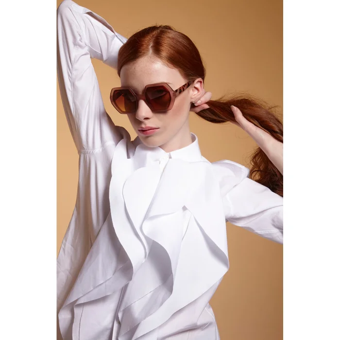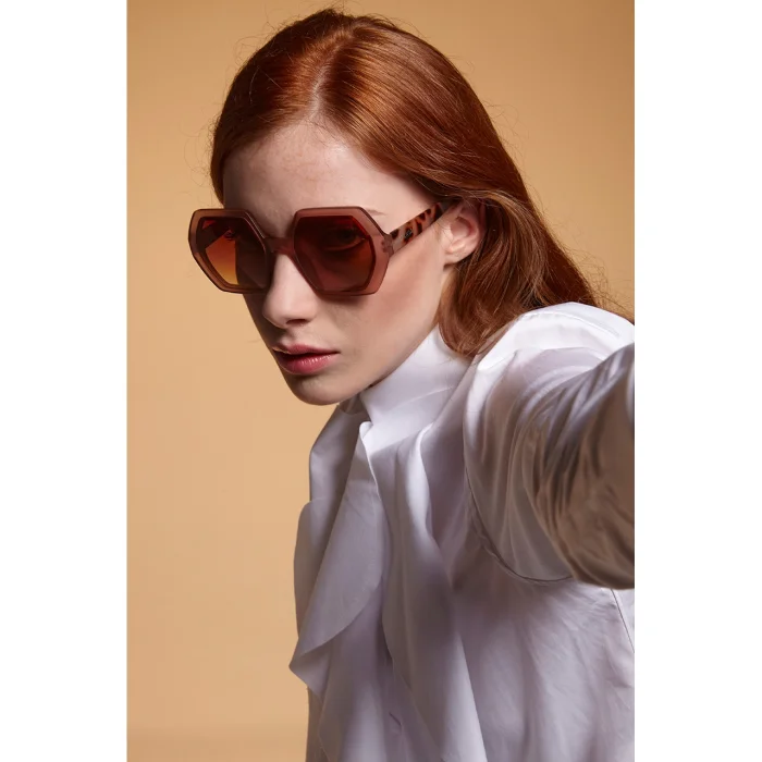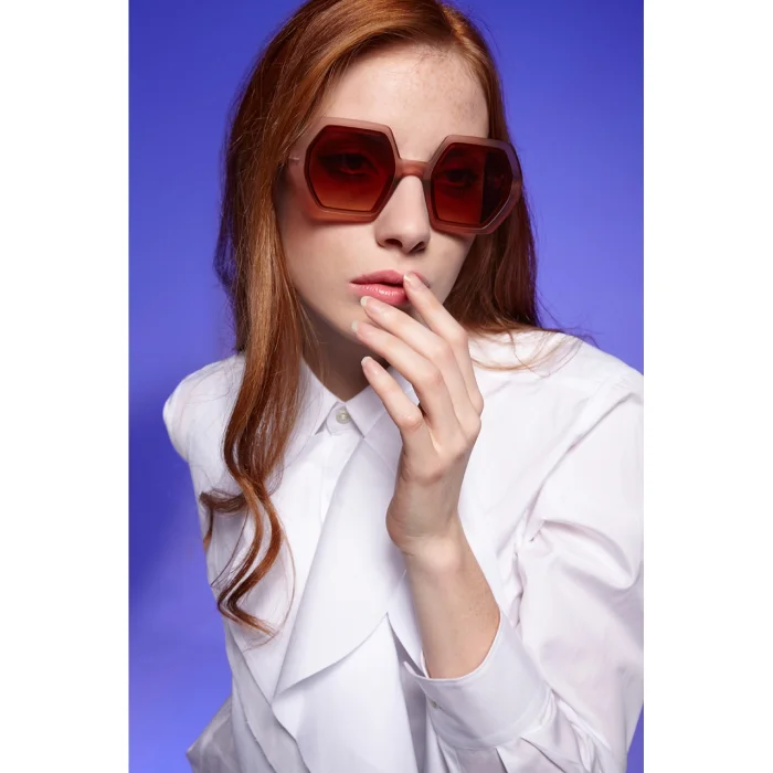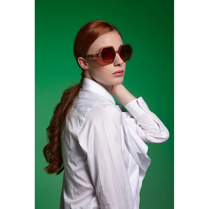 EMMA is a pre-assembled hexagonal sunglasses with a soft-touch frame and overlapping lenses. Gradient lenses are characterized by the fact that the dark color at the top of the lens changes to a lighter color towards the bottom of the lens. Sunglasses with gradient lenses are very convenient for driving, you can easily look at the dashboard from the lighter part, while the upper half of the lens protects you from glare! Okkia's stylish and affordable Italian sunglasses are extremely comfortable thanks to their light weight and soft-feeling frames. It is designed to easily adapt to any face, allowing you to wear it for long periods of time. Meets the relevant European standards for category 3 light filter lenses with UV 400 protection (8% - 18% transmittance).