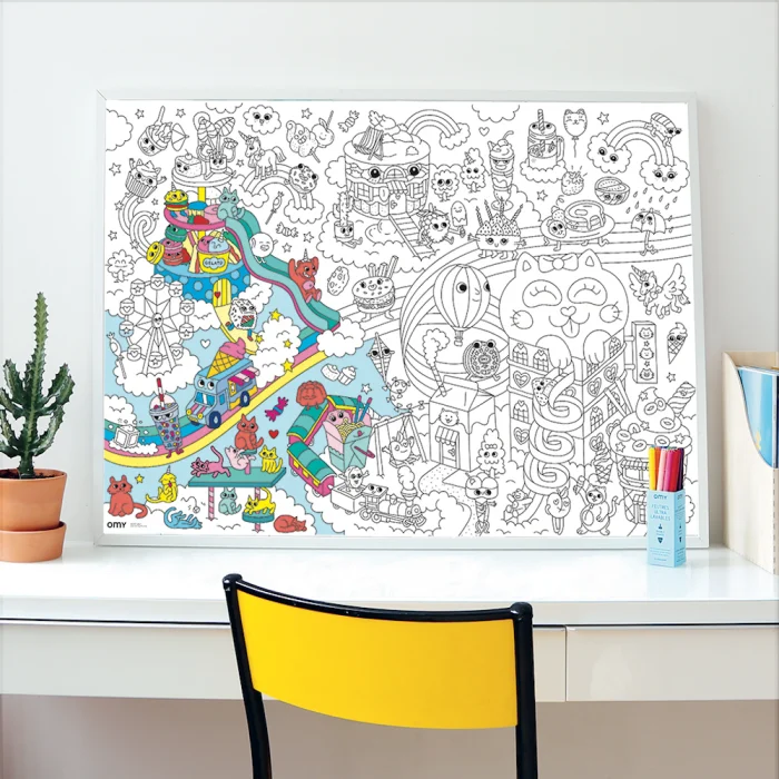 OMY offers you and your kids hours of coloring fun, either alone or with friends. Put it on the table, floor or wall and start exercising your imagination. The options are endless! Package included: 1 poster Poster size: 70 x 100 cm Components: Recycled paper Designed and manufactured in France.