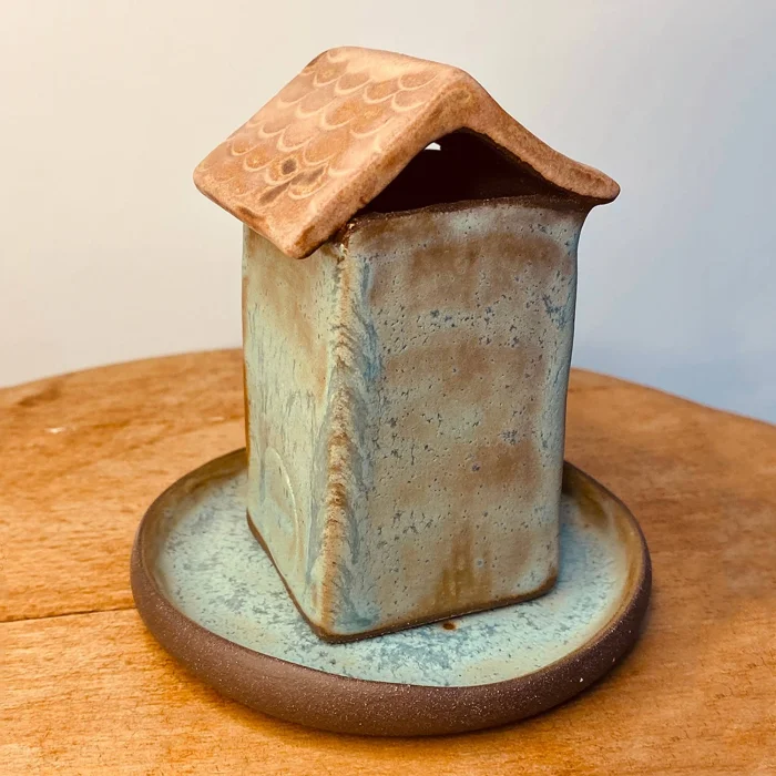 Handmade Ceramic House Palo Santo Holder With Stoneware Plate