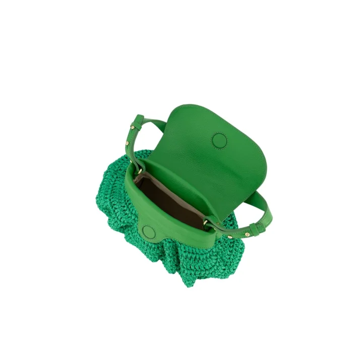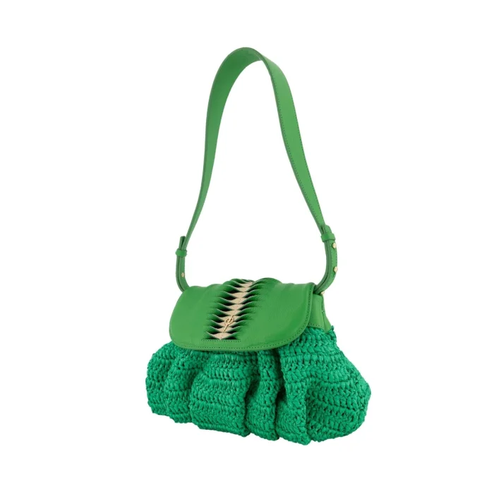 100% genuine leather, Raffia weave, Magnetic Clip, Shoulder Strap, Mobile Phone Compartment