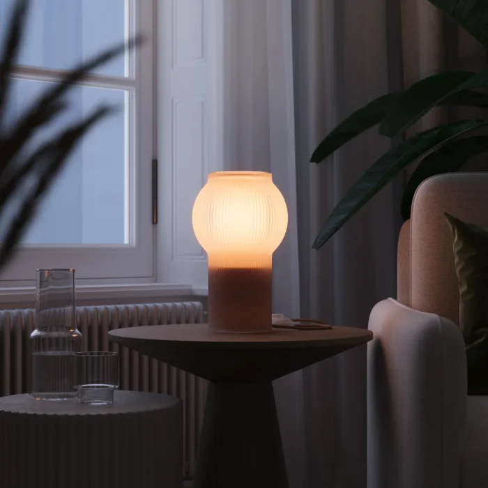 Material: The lamp body is made from plant-based biopolymer (PLA). Thanks to its eco-friendly structure, it offers a low environmental impact; visually as refined as glass or ceramic, yet significantly lighter and more durable.