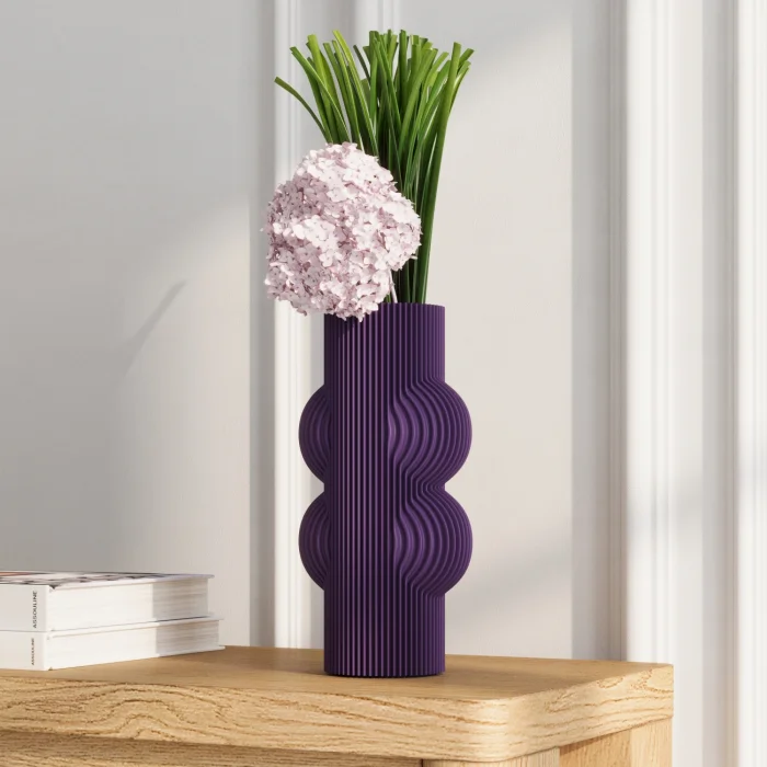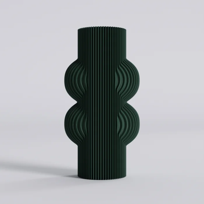 Each vase is produced using PLA material and features a 2 mm cork base to protect surfaces from scratches.