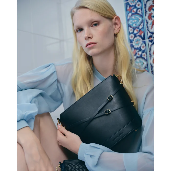 Crafted from vegan leather, the Glacier stands out with its elegant form and body structure set on an elliptical base. Its ergonomic design adapts to the natural movement of your arm when worn on the shoulder, ensuring extra comfort. The zip closure keeps your belongings secure, while two interior pockets, including one zipped, offer organized storage. A removable, adjustable long strap and handle provide versatile carrying options.