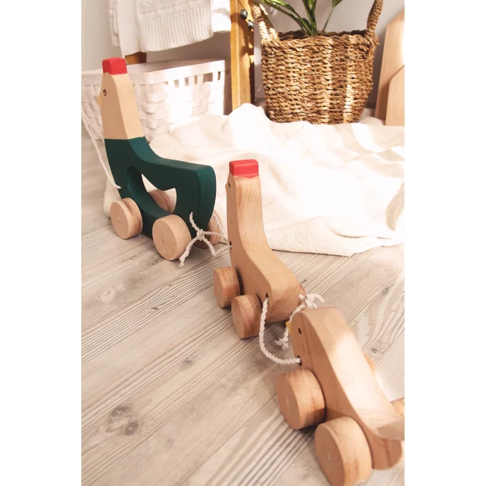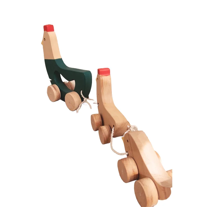 Product: Cute Wooden Chicken And Chicks Toy With Wheels