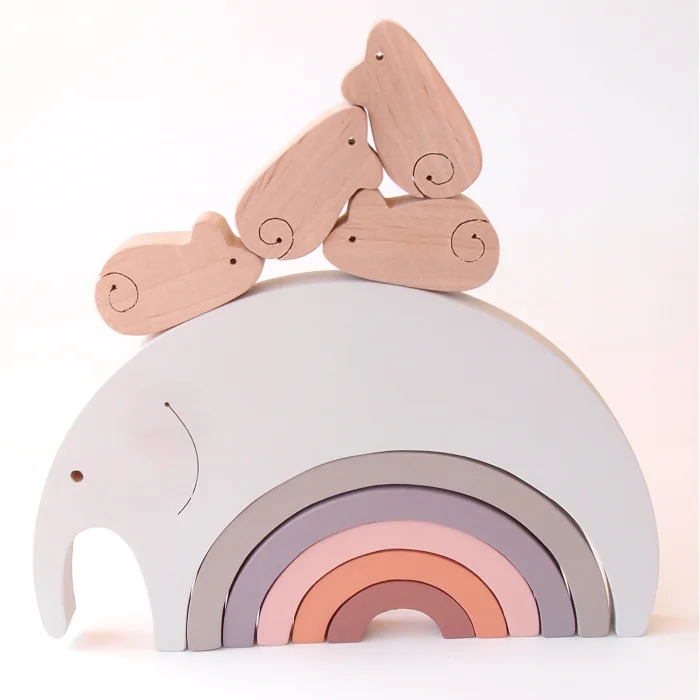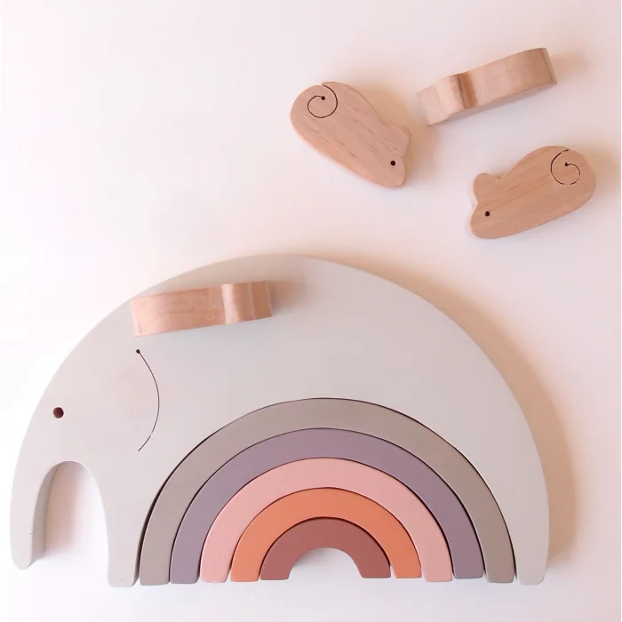 Product: Elephant And Mouse Wooden Rainbow Puzzle
