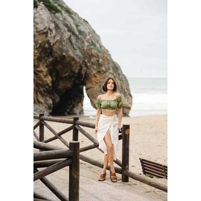 Skirt Thanks to its breathable 100% cotton fabric, it makes you feel like you don't have it on. It can be worn in all seasons despite its thinness and lightness, as the burlesque appearance is fixed thanks to the special washing technique.