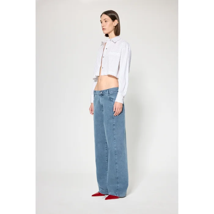 Fabric: 100% Cotton Volume: Relaxed form, front button, classic collar Length: Crop Detail: Hemhem and cuff edge left cut