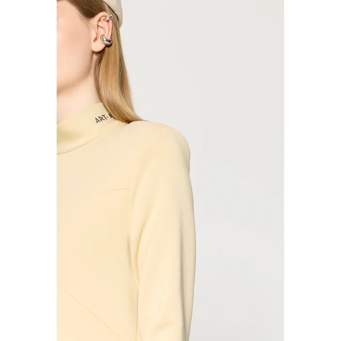 Fabric: Modal blend knitted fabric Volume: Padded, comfortable form, finger opening, long sleeves Length: Maxi size Detail: Collar, printed, back zip with contrast stripe, slit