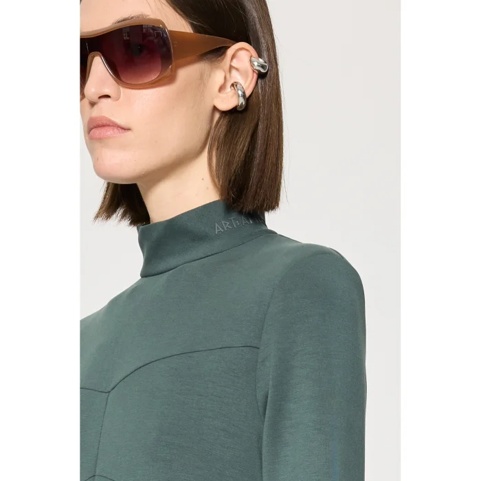 Fabric: Modal blend knitted fabric Volume: Padded, comfortable form, finger opening, long sleeves Length: Maxi size Detail: Collar, printed, back zip with contrast stripe, slit