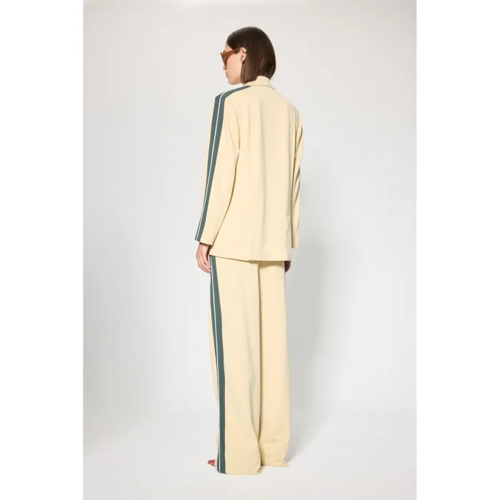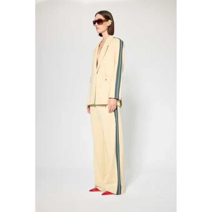 Fabric: Modal blend knitted fabric Volume: Adjustable elasticated waist, wide leg Length: Long leg Detail: Pocket zipper with contrast strip with contrast band on the sides