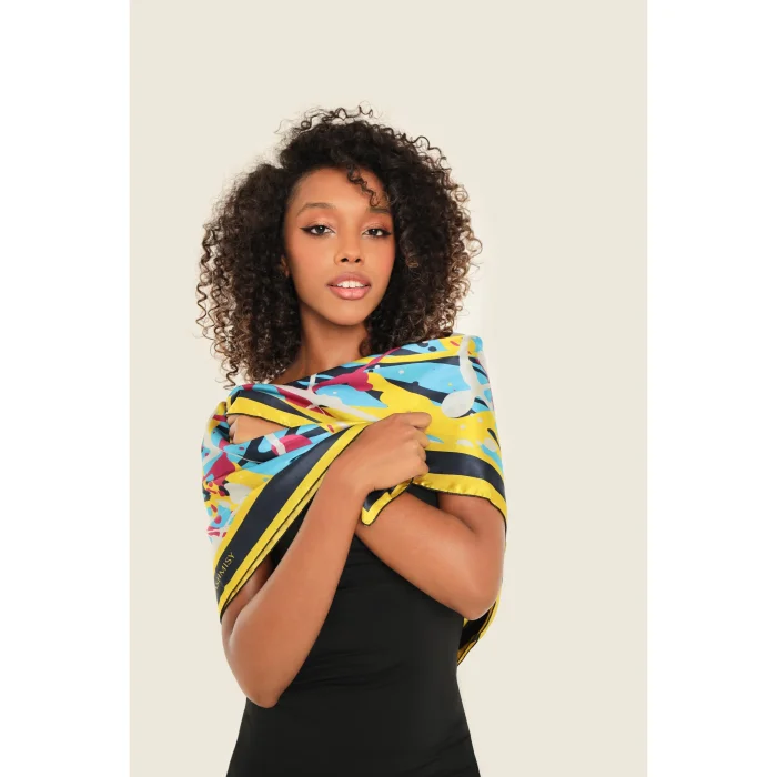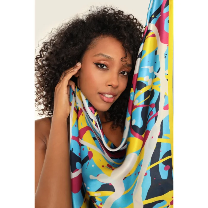 Artistic Inspiration: Drawing inspiration from the works of Pollock, this satin silk scarf captures the essence of abstract expressionism.