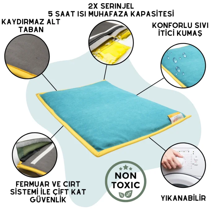 “Serin” is pawdaz's special mat designed for laying under pets that you can use hot or cold whenever you want. Its dimensions are 15,7X23,6 inches. Safe for use by all cats and small/medium sized dogs in all situations where temperature stability is required.
