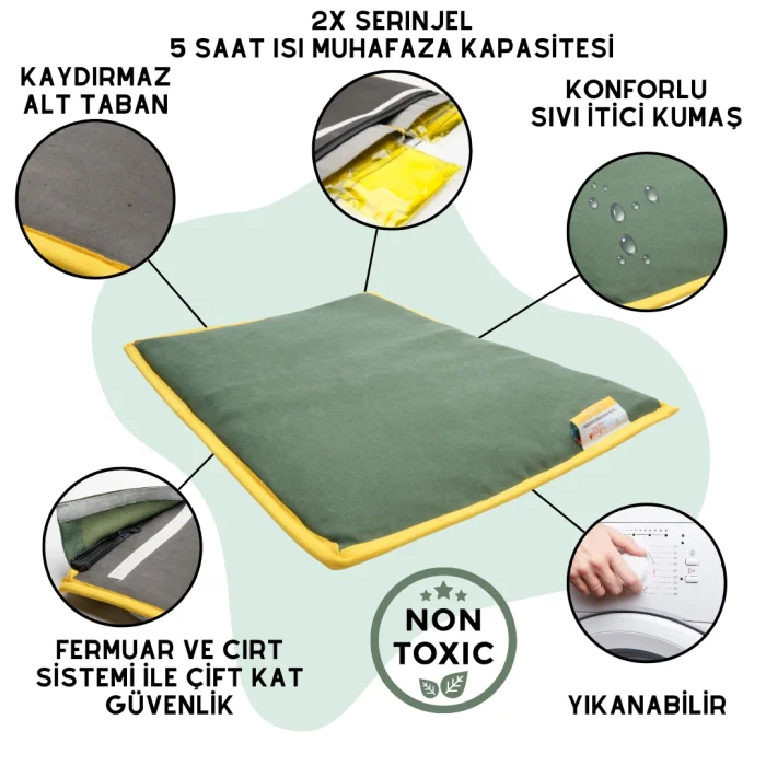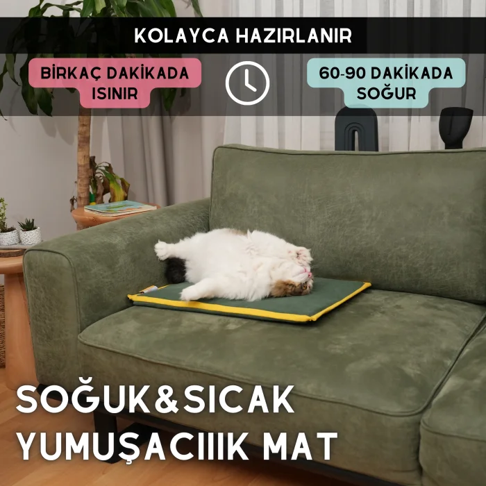 “Serin” is pawdaz's special mat designed for laying under pets that you can use hot or cold whenever you want. Its dimensions are 15,7X23,6 inches. Safe for use by all cats and small/medium sized dogs in all situations where temperature stability is required.